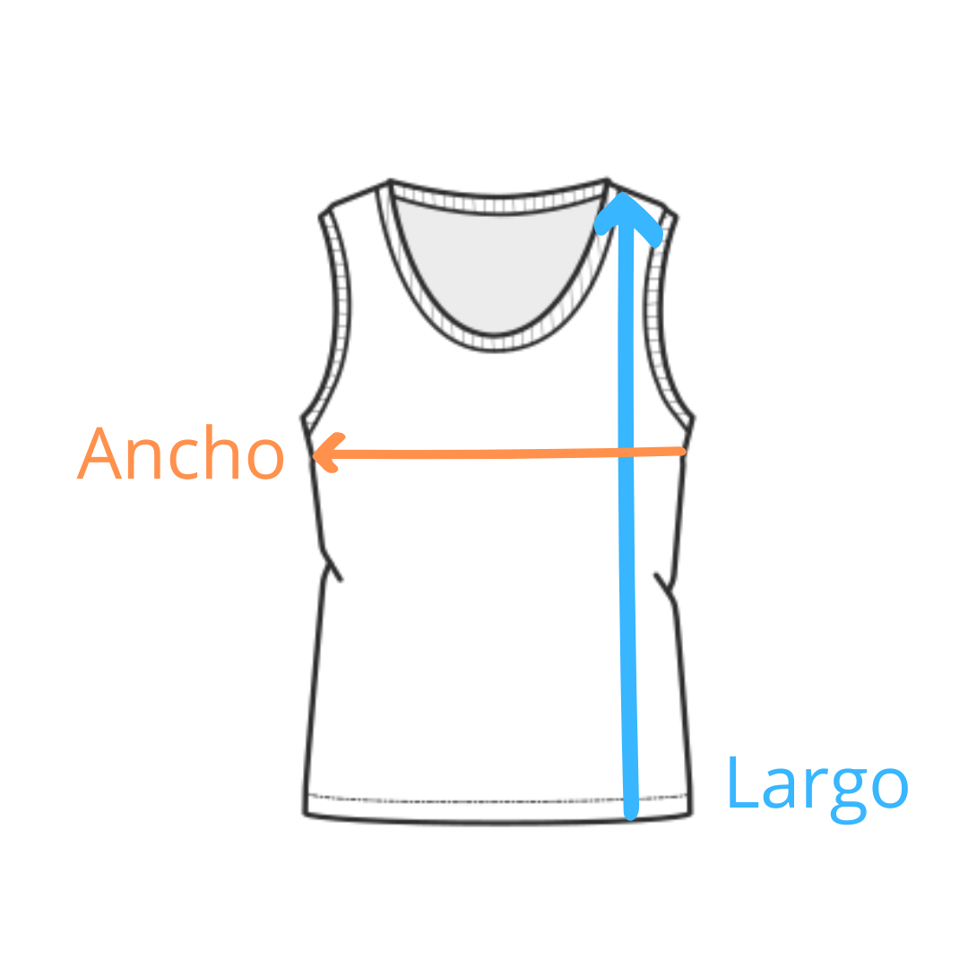 Musculosa básica, media polera. Entallada en cintura (3cm menos del ancho).