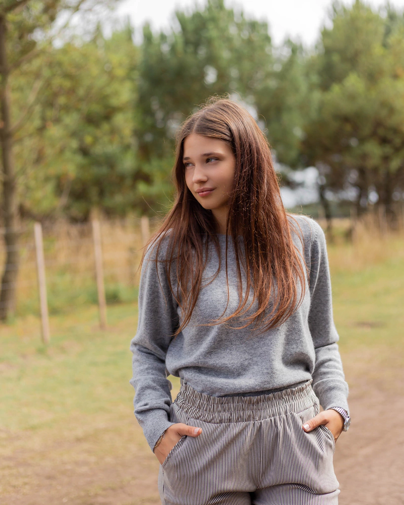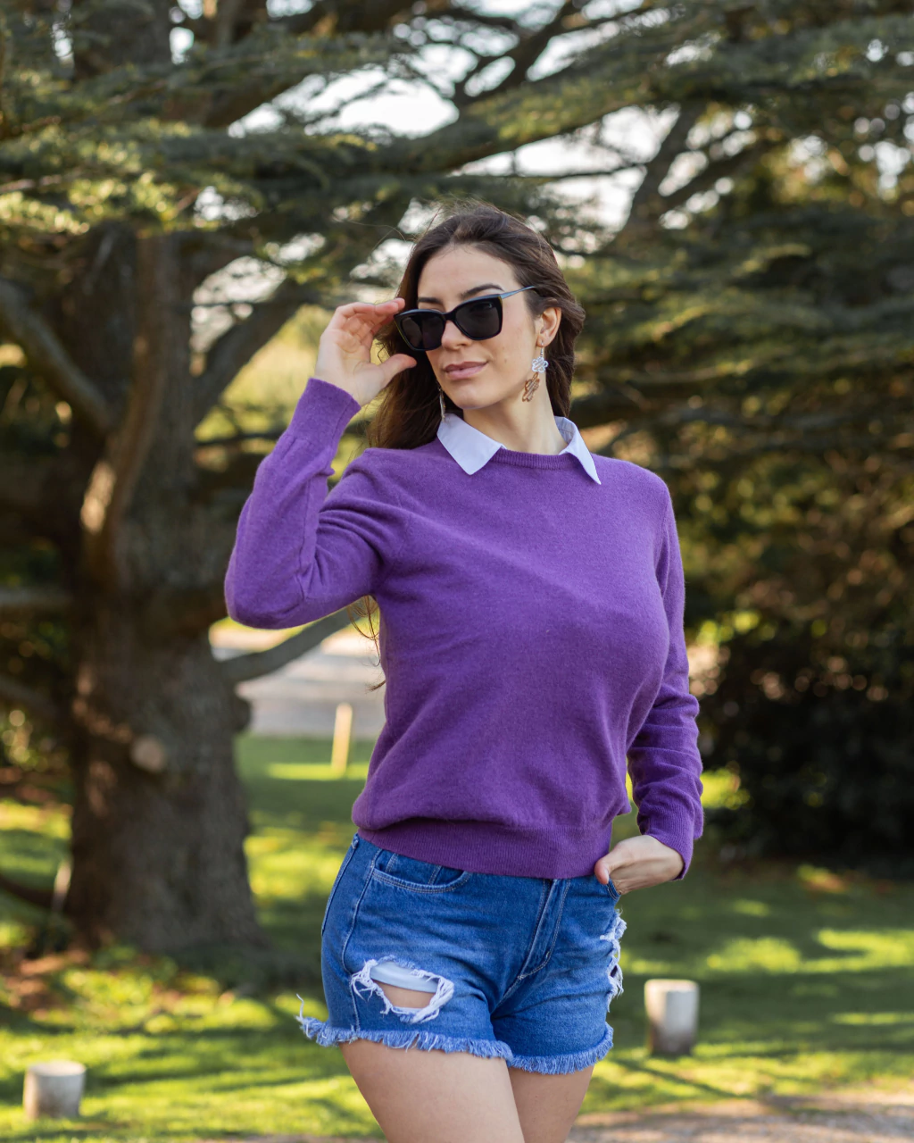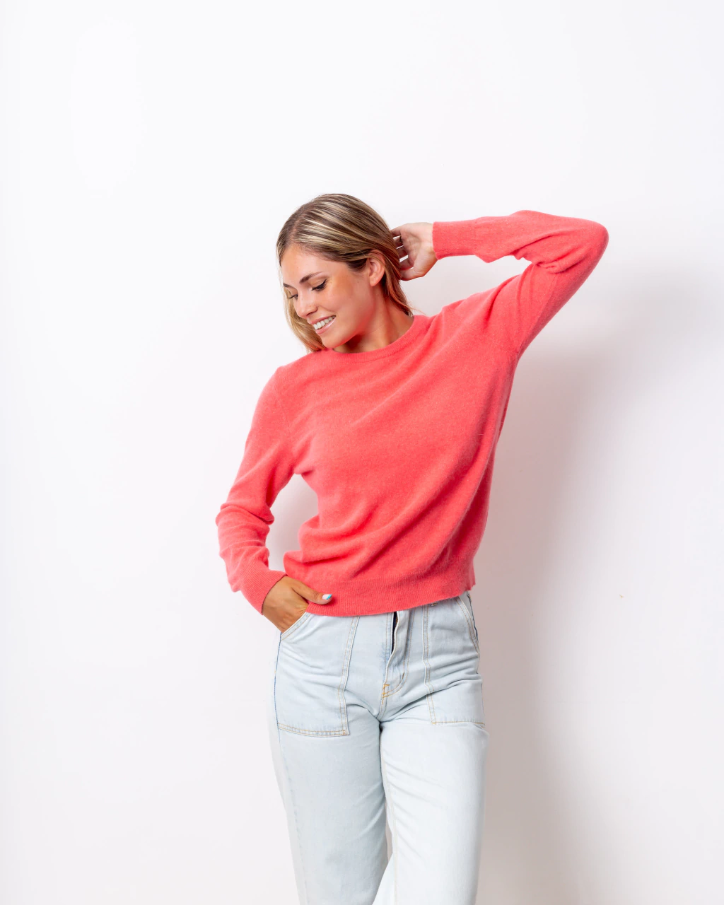 Sweater básico, cuello redondo, tejido fino en lana merino y pelo.
